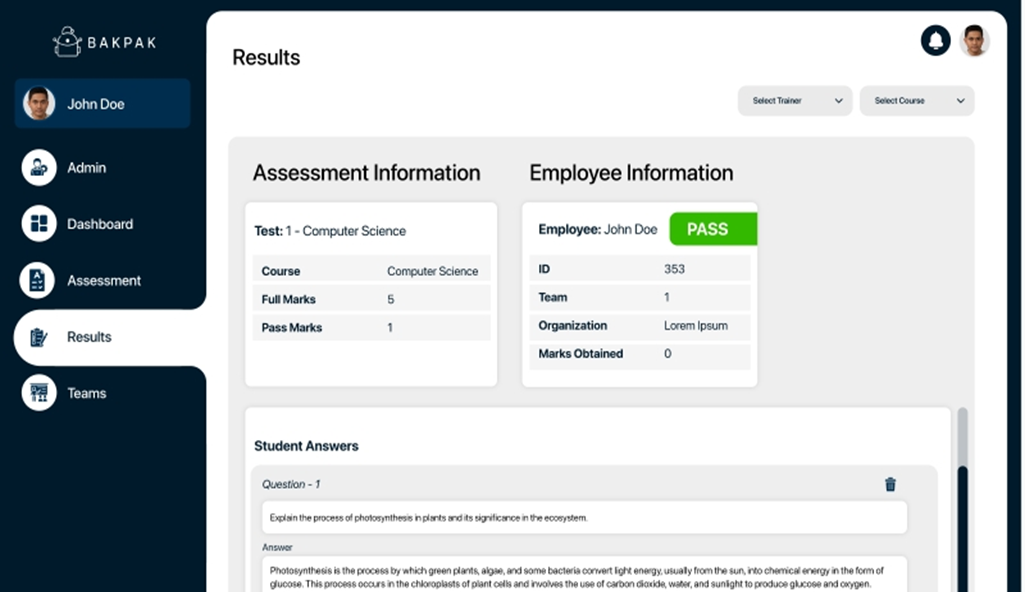 Bakpak.ai’s AI-powered assessment platform follows a streamlined workflow designed to enhance the assessment process while ensuring accuracy and scalability.